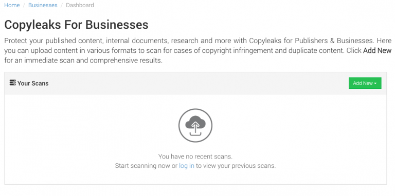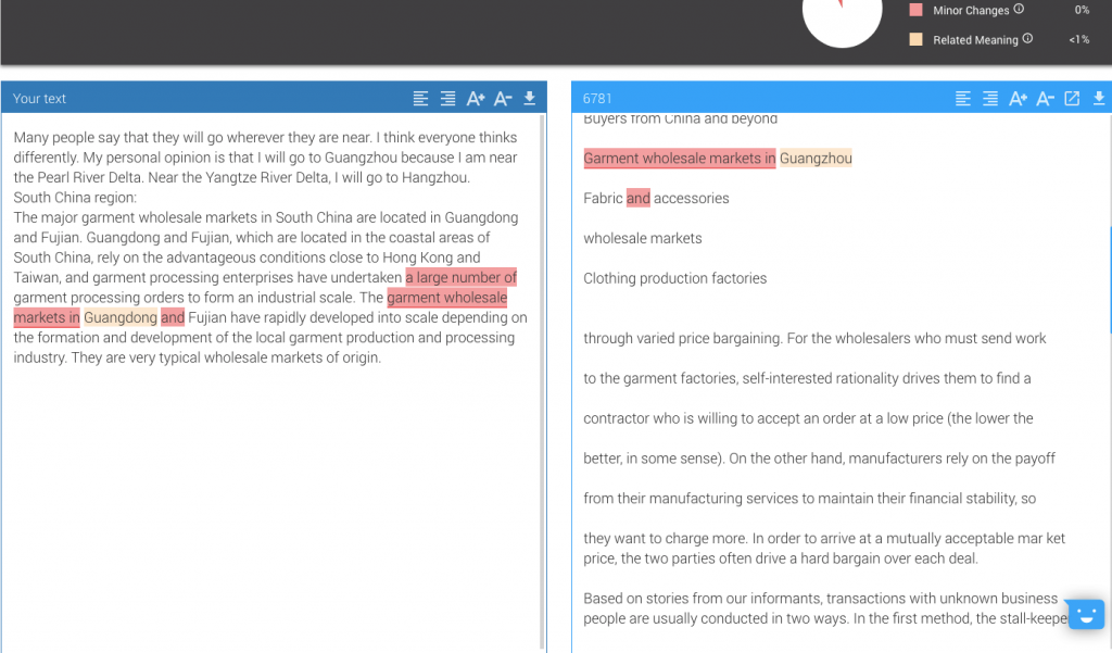 6、Copyleaks Copyleaks主要提供教育和商务领域的内容原创度检测功能,它是付费的,但提供30天的免费试用期。系统支持文件、网页以及文本重复度检测。 输入文本或者网址,进行检测,之后便会检测出网络上与之相重复的部分,并显示网址以及重复程度。 copyleaks重复程度