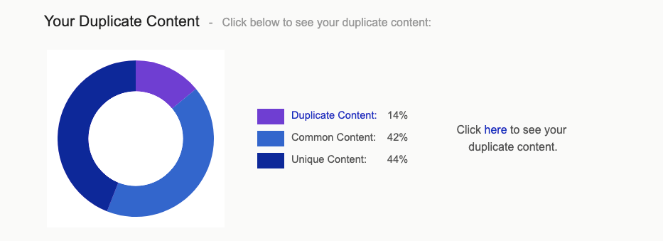 显示为New, 则表示没有重复网页。如果有重复内容,它会列出详细的网址。如果是别人窃取了你的内容,你可以Email通知他们去移除内容。网站的重复内容大于10%,则视为垃圾网站。