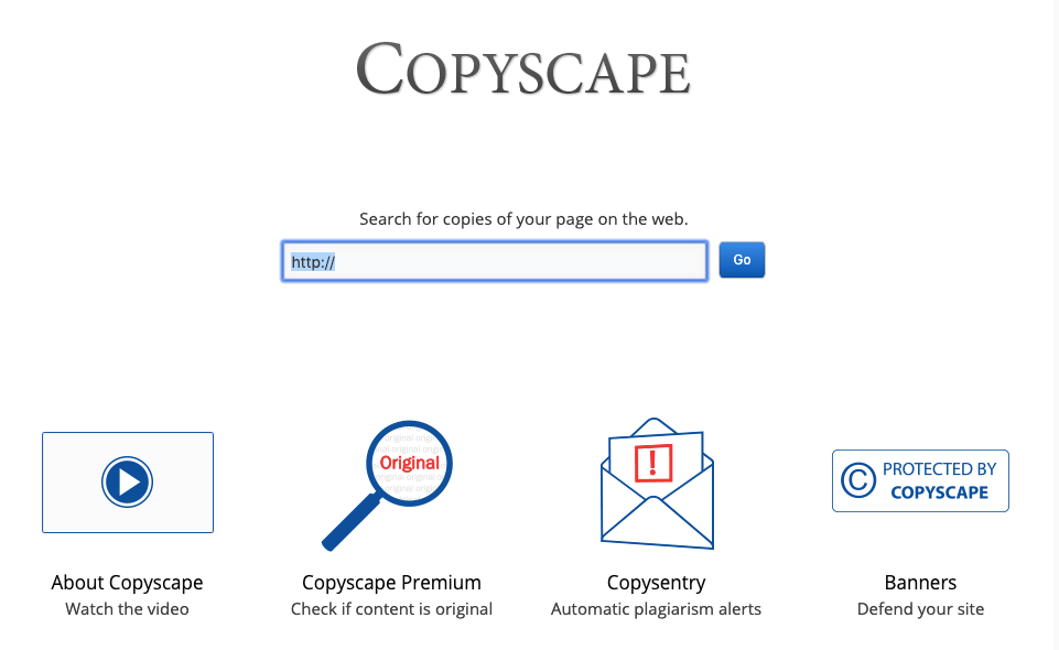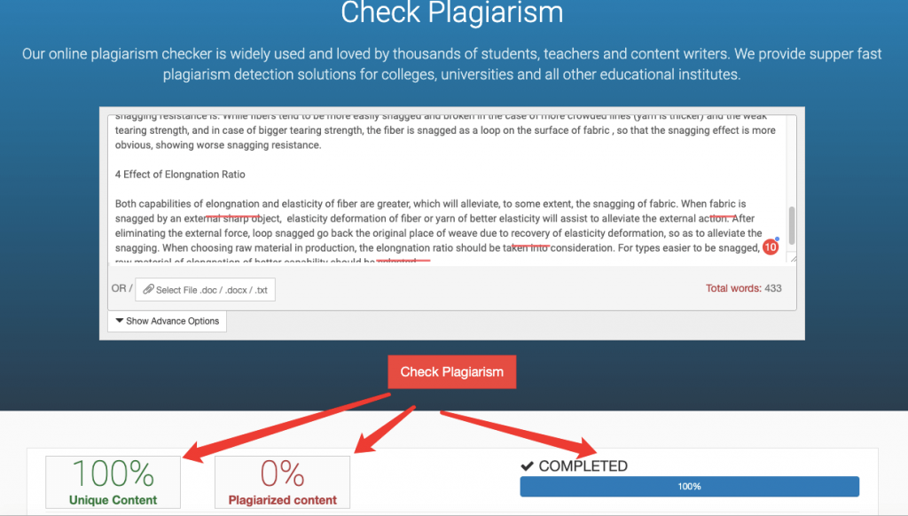3. Smallseotools 相信很多人都使用过这个网站,他的功能非常强大,其中包含关键词工具,外链工具,内容工具等等。重点是都免费!有兴趣的可以用用看。今天我们要说的就是它的剽窃检查工具(Plagiarism Checker) Plagiarism Checker支持两种检测方式,一种是直接粘贴文本或上传文档检测,字数不能超过1000字。另外一种是直接输入网址。如果是你找写手帮你写了英文的内容,想检查其是否为原创,便可以使用文本检测功能。如果是网站上的内容,直接使用URL检测就可以了。